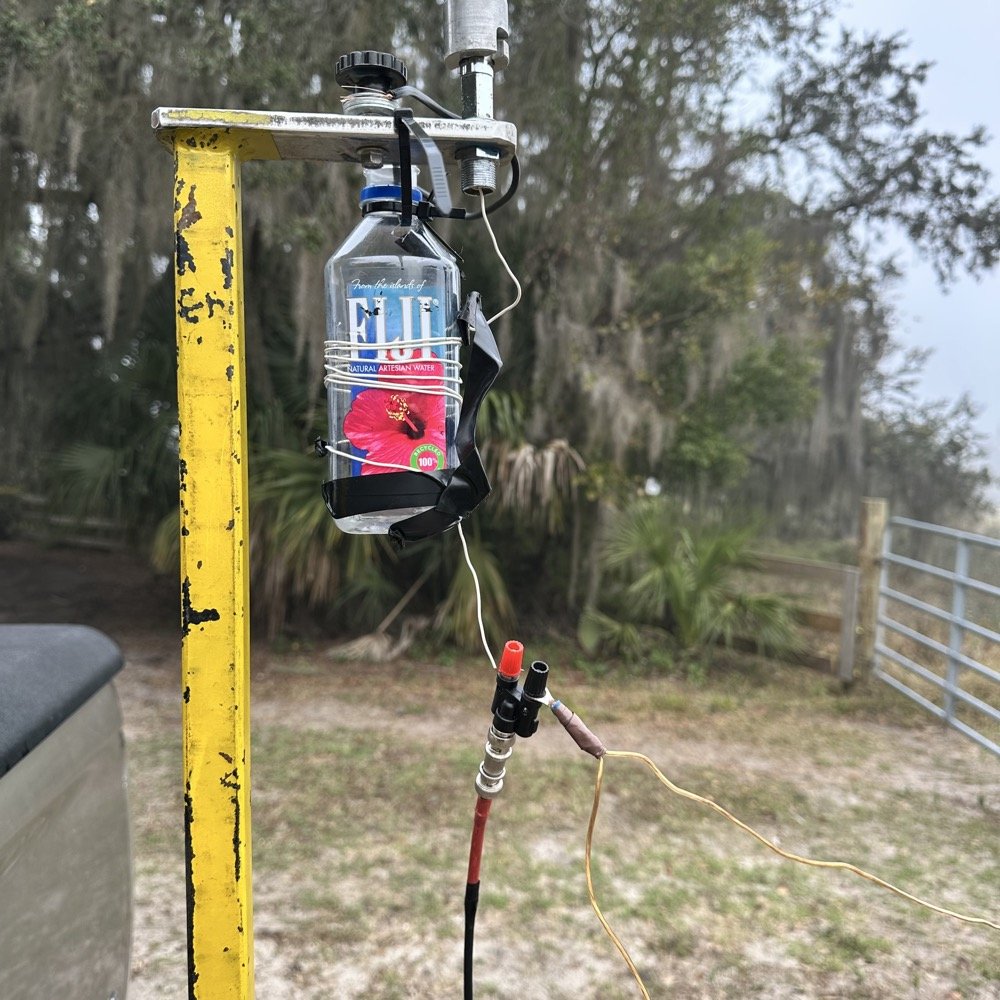 I chose number 2 on this list. The old load coil that I made from scraps back when I activated a park in Stevenson Alabama has been riding around in the “possibles” bag since with no real direction in lfe…till today. I rigged it up with a ziip tieand connected it slightly differently than last time, but it was essentially the same. I added the BNC to Banana plug adapter to the coax with a double ended male BNC coupling and then simply connected the radials to the black lug and the “coil” to the red lug. Now to be fair, this was not a plug and play system by any stretch of the word. I had to fiddle with the coax placement (as it acts as a radial to be honest here) and I also tinkered with the two ground radials quite a bit till I came up with what you see below.