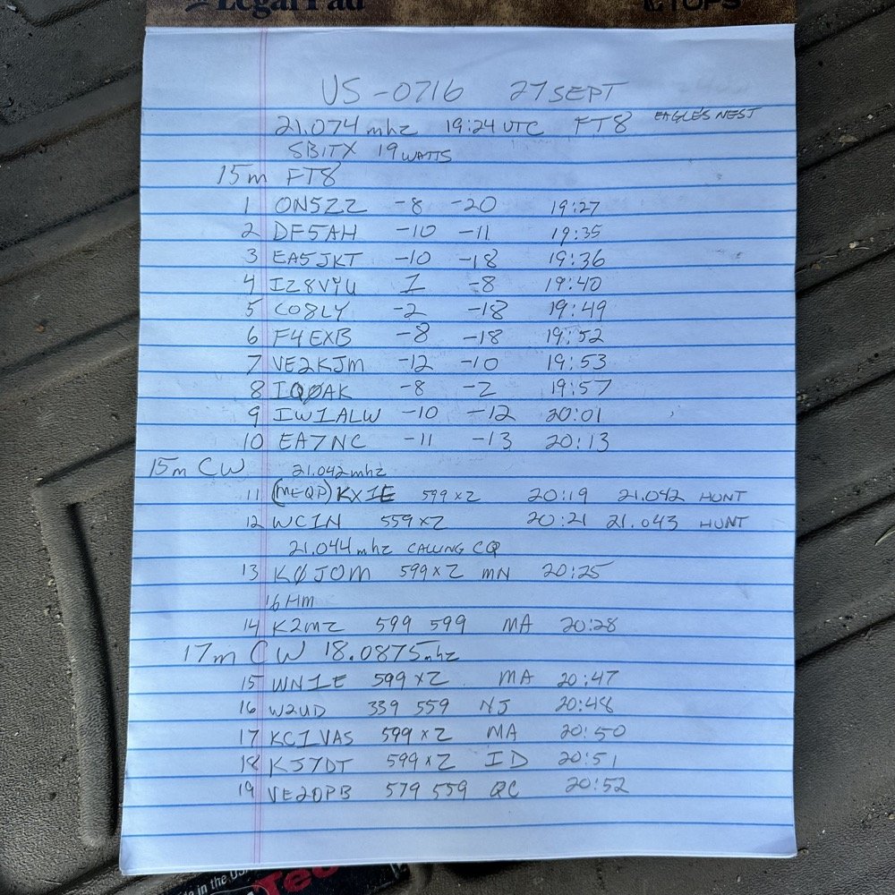 Today saw me at the roadside location of Eagle’s Nest inside Park US-0716 and there is just enough room to setup a solo operation. I also recommend operating from inside the truck as it can be really noisy at this location with all the cars in such close proximity to the operating position. Also today while I was setting up, it really looked like it was going to rain. It even start sprinkling when I was taping up the coax, which put me into a higher gear for the rest of job too! haha, I have went up into the park area here before a few times, but this locations works really well as a quick in-and-out POTA spot when time is of the essence.