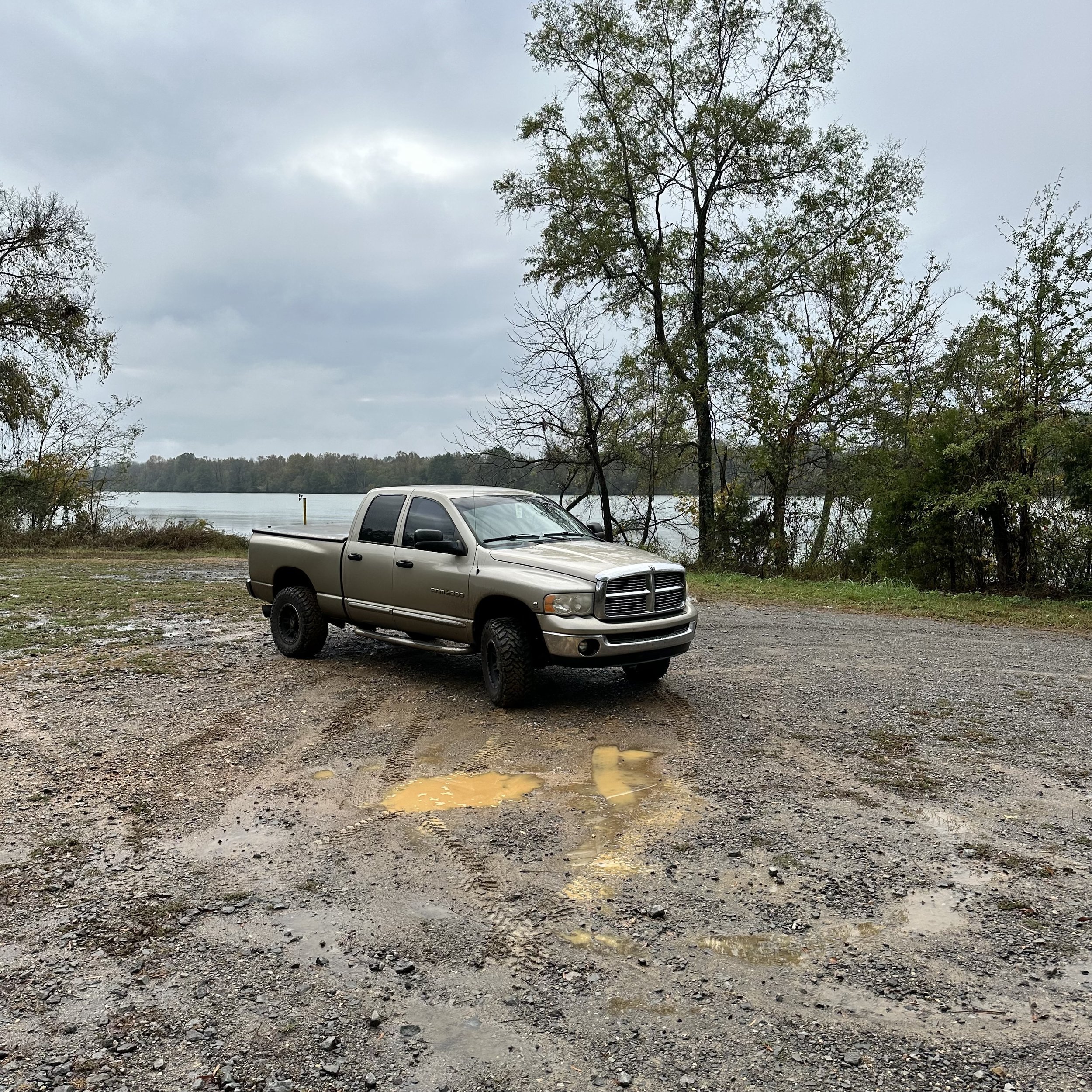 I rolled into the WMA at about 14:30 local time and set out to build the radio down by the Tennessee river. This is a small parking lot at the end of one of the gravel roads into the WMA and a lot of locals come to this spot to fish in the river from the shore. Did I mention it started raining right after I got the antenna setup and I got into the truck? Well, let me tell you, the rain set in and it didnt stop the whole time. I even broke down the antenna and stuff out in the rain today!!!