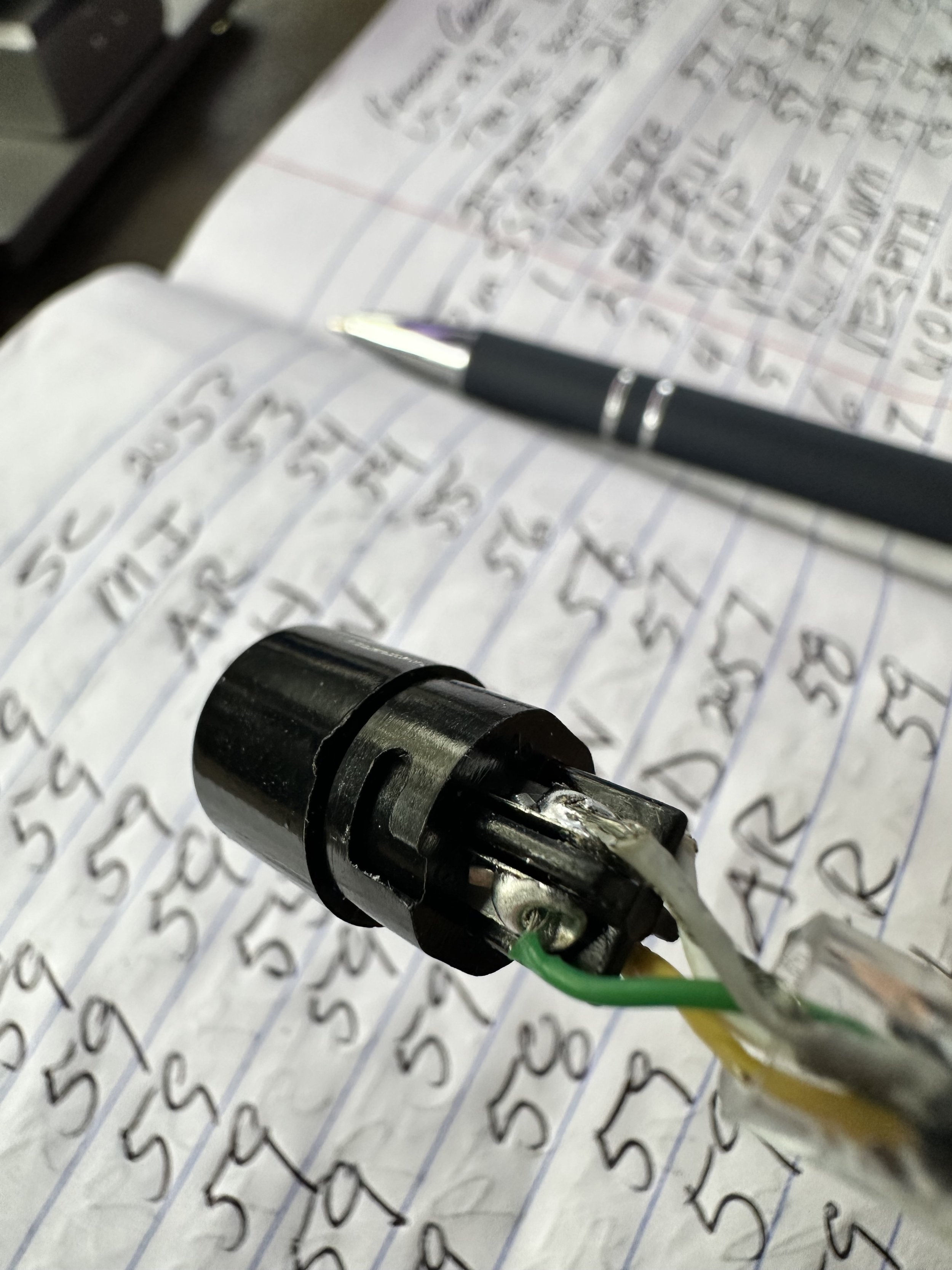 I setup shop on 15 meters SSB for a change and wanted to see what I could get before 15 faded out, but I noticed almost immediately that the ALC light wasn’t coming on at all when I would transmit audio. This lamp should just blink on the energy peaks but it wasn’t coming on at all. I messed with the mic gain and nothing. I did notice that I could wiggle the cord at the plug and it would make all sorts of stuff happen. This pointed me to the connector being faulty somehow but workable to some degree.