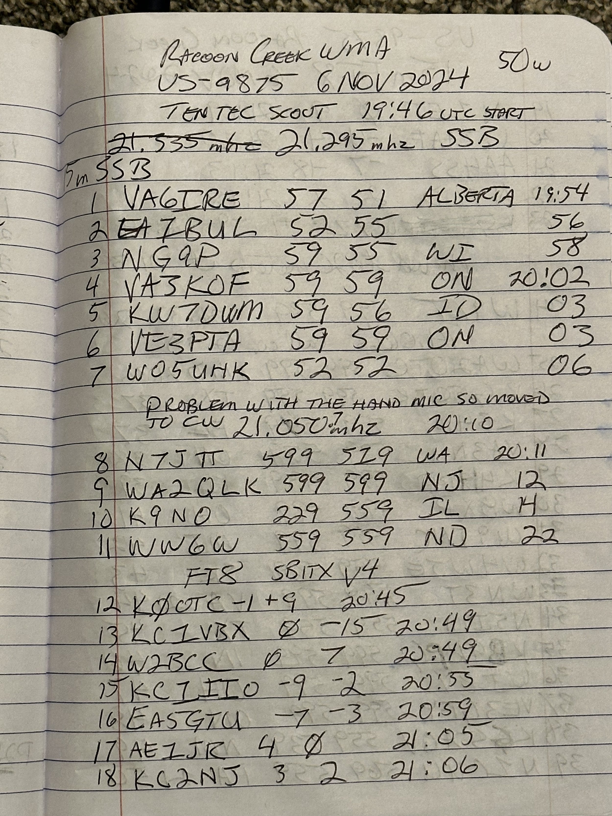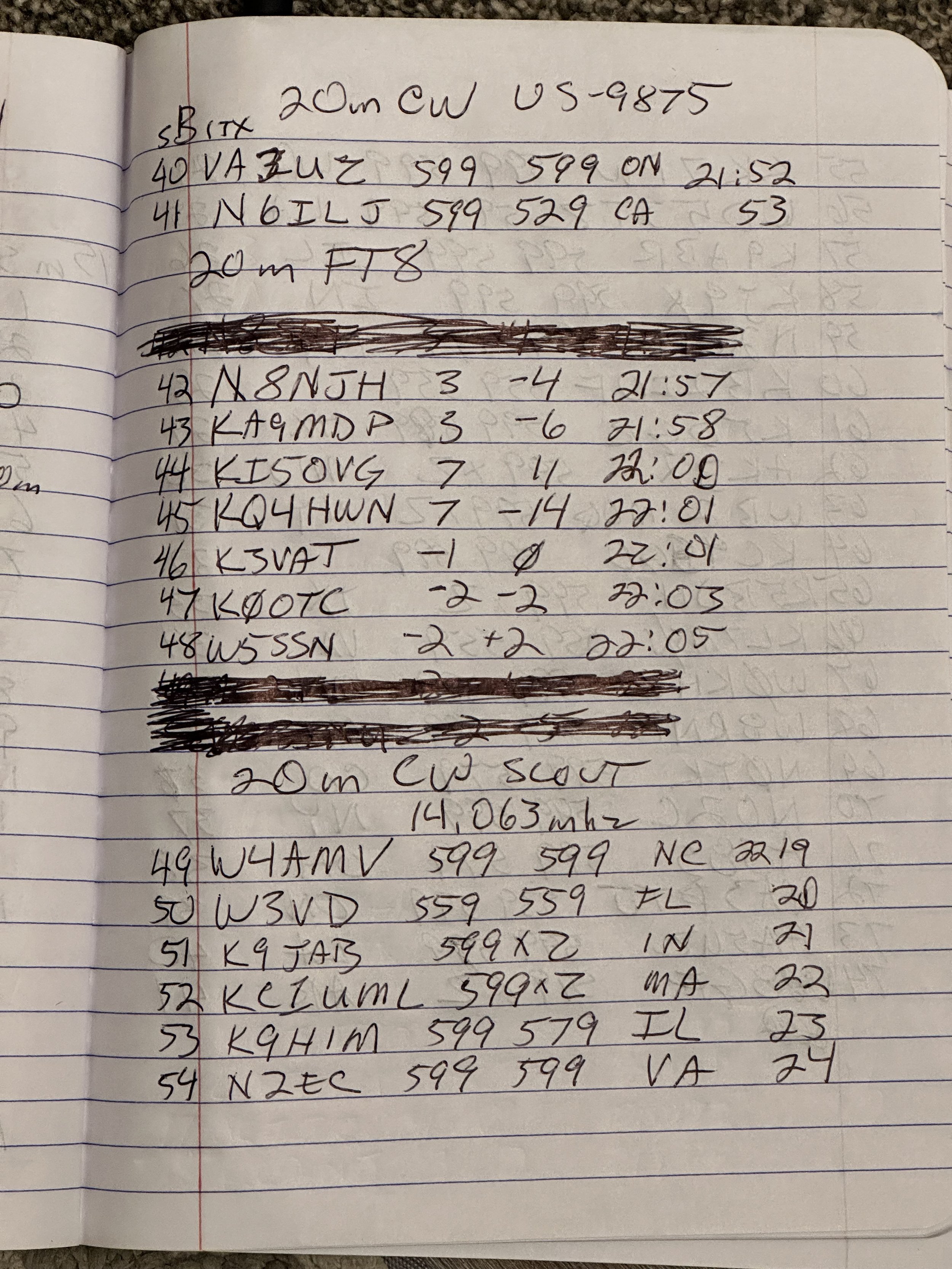 At this point I had made 48 contacts which is a phenomenal day out for me, but I wanted 12 more to have that 60 that I started out my goal with! So at this point I move back down into the CW portion but this time on the Ten Tec Scout 555 instead since the CW mode on it works beautifully.