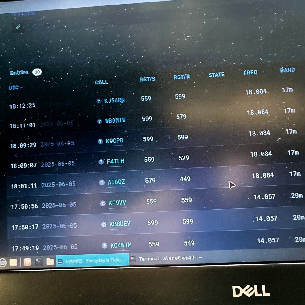 The antenna I used today was the 213” vertical from Wolf River Coils that I picked up at Hamcation. I have not used a hamstick in a good bit lately. While those antennas work really well, I can tune the vertical for all the other bands it will reach that I dont have a hamstick for currently. This opens 12 and 10 meters up for me and that is cool…when those bands are open.