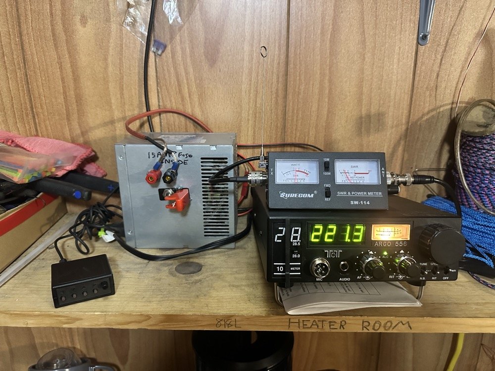 Almost done. Like I was saying, I still need to update the keyer power supply to run on the AC power supply and then it will be done. The Argo 556 is kind of a unicorn to be honest since it is the same radio as a scout but without the 50 watt amplifier module. Most people just bought scouts and turned them down if they wanted QRP operation. I found this one on QTH if memory serves me and it had one of the band modules I was searching for so I grabbed it up mainly for the modules but the little radio works too good not to use it. I am kinda glad I have found it a job where it can be productive. I still need to fine tune the frequency to 28.221mhz and call it good. Kinda glad that all this happened at the same time to be honest, this way I was able to update the system to a better radio as well as find a possible problem with the keyer. I am still not convinced that the radio might have killed the keyer somehow, but I don’t know. I know that the two mosfets measure different in circuit so I am going to pull them out and see if they are bad. Something like blown gates could cause them not to work if I had to guess. We will see soon.