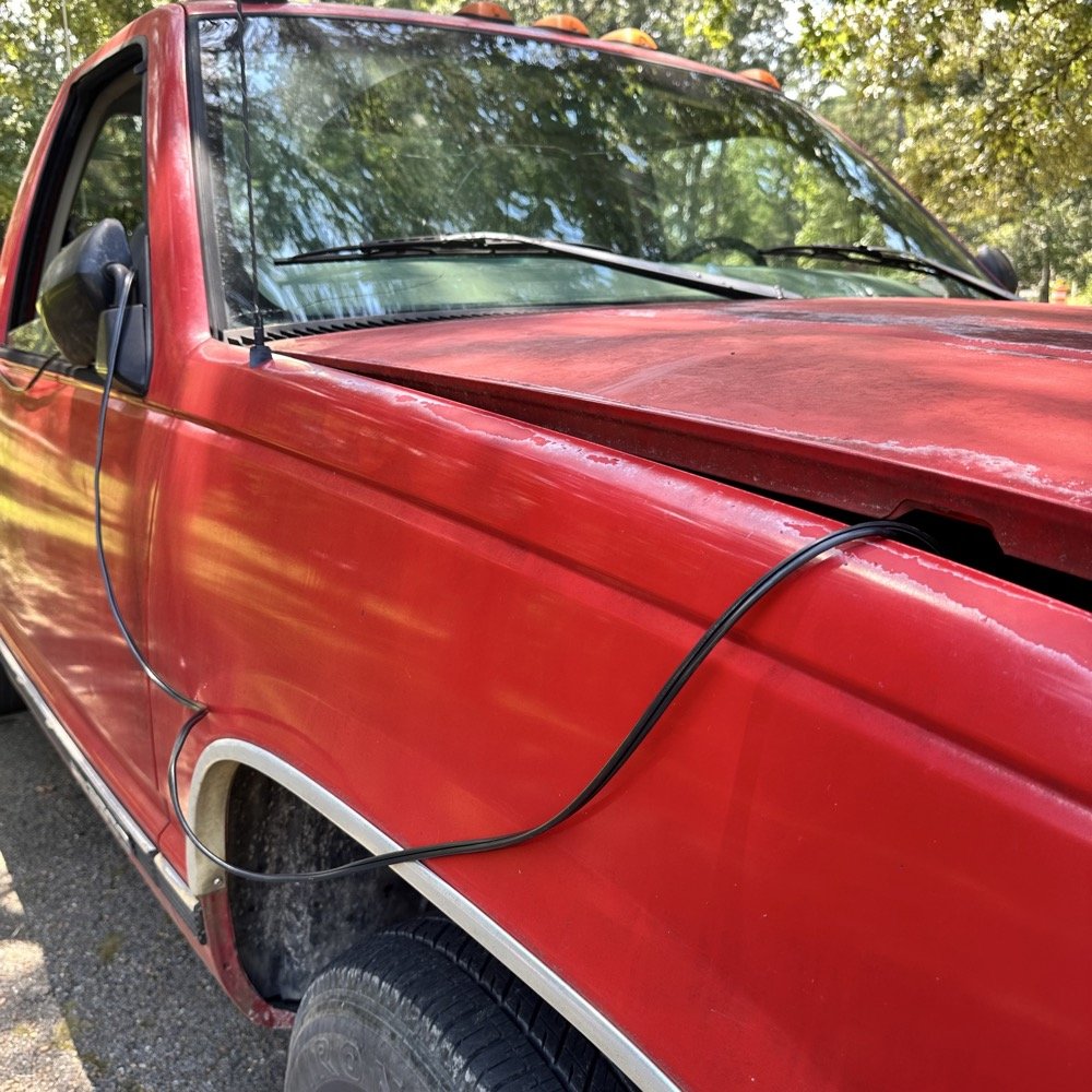 In the above photos you can see what I came away with. I bought a 25’ spool of 16ga two conductor lamp cord for 9$ (I also had bought some Sta-Kon connectors but I didn’t use them so I don’t count them in the project cost… The cord was just long enough to reach without being banjo string tight and I had enough ampacity in the wire to be able to run it and just get on the air. I started by attempting to connect it to the fuse block on the other side of the truck but as it turned out, all the external connections were switched and I wanted raw power from the battery… I know that I should have added a fuse where it connects to the battery, but this was “expedient” and not “Correct”…lol. Instead I just ran with it and had a good time. I was very careful about where I put the wire so it would not get cut or shorted out on the truck body, so I had good confidence this would be fine for a temp operation. It also gave me a spool of wire to make QRP power cords out of in the future so I can repurpose the wire after the activation too. I found that I could just shave a little off of the insulation on the conductors and they would fit into the power-pole sockets and had tension so they would not fall out. I also tied off both of the wires to prevent them from moving around during the activation too. This proved to be a very solid connection and worked just fine.