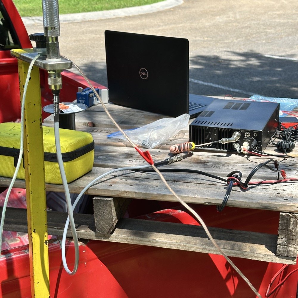Before you get all wound up over how close I am to the antenna, I was on the other side of the pallet from the base of the antenna and the power is turned down on my Scout to about 30 watts at this time. I ran the numbers through the ARRL exposure calculator and the minimum distance is 1.17’ away from the antenna on 20 meters and 1.5’ away for 17 meters. I was at least 6 feet from the antenna so I was 4 times the minimum recommended distance with this setup.